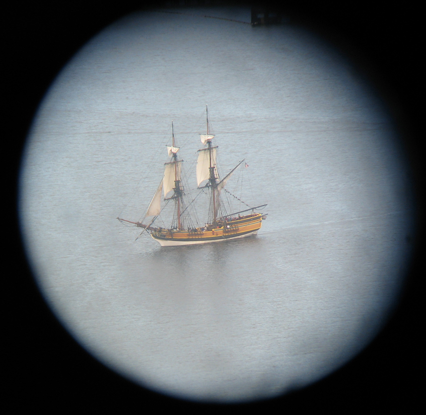 We were on the Space Needle in Seattle and looking through one of the telescopes on the observation deck at a ship someone said had been used in the movie "Pirates of the Caribbean". I decided to try to see if I could get an image of the ship using afocal coupling between my Canon PowerShot and the telescope and recreate an image like what is seen in the movies when the hero looks at a ship through a telescope. It was quite a surprise to get as good an image as I did.