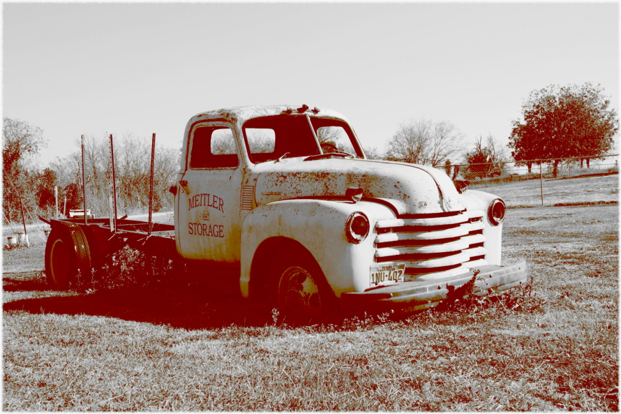 Driving to Lockhart on Highway 1966 I saw this old truck parked in the field in front of a storage building. It reminded me of when my Uncle Ed taught me how to drive. We took an old beater pickup out into a field and he let me drive it around to learn how to start, stop and shift the gears. The first day we did it, the field was soft from a recent rain and we got it stuck quite a bit.
